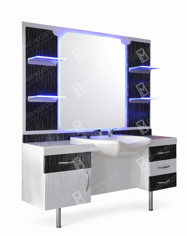 Batarya takımı, cam veya haraketli akrilik lavabo, led ışık